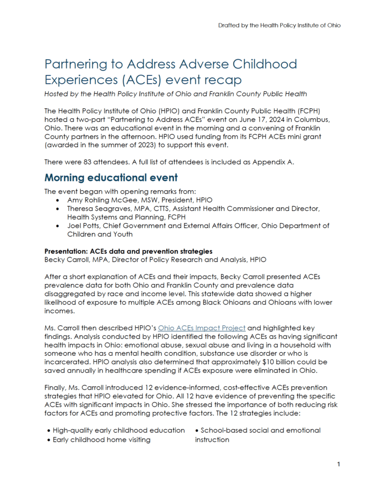 Partnering to Address Adverse Childhood Experiences (ACEs): Event Report