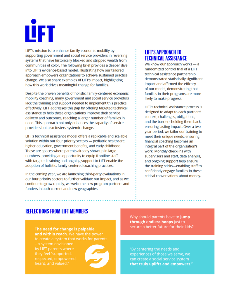 LIFT Technical Assistance Model: Advancing Family Economic Mobility