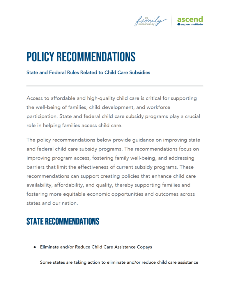 Policy Recommendations: State and Federal Rules Re: Child Care Subsidies